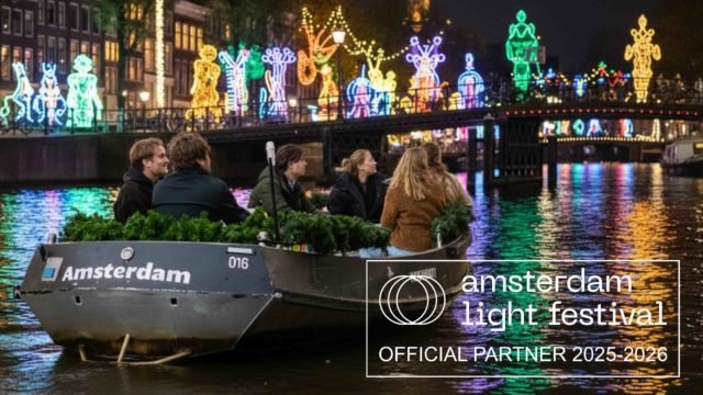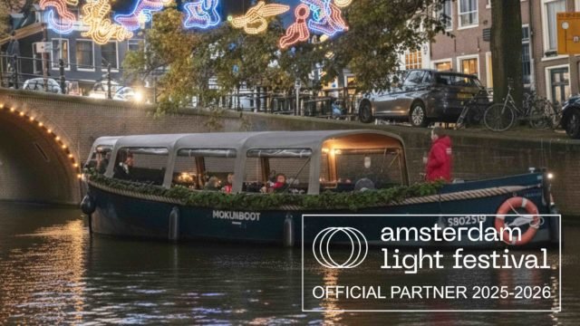 Öffentliche TourErleben Sie das Light Festival von den Grachten aus auf einem komfortablen Boot (teilweise überdacht), optional erweiterbar mit unbegrenzten Getränken und Glühwein.