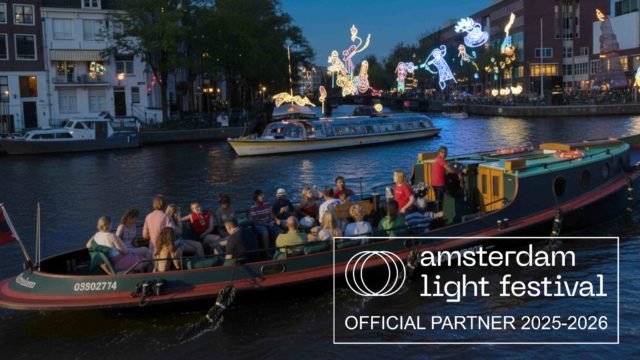 Öffentliche Grachtenfahrt während des Amsterdam Light Festivals