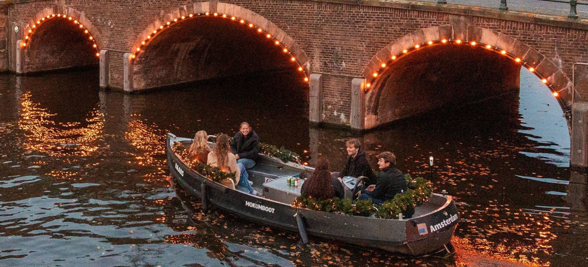 Bei Mokumboot ist es möglich, ein eigenes Boot zu mieten oder eine Rundfahrt während des Amsterdam Light Festivals zu buchen, um die Lichtkunstwerke aus der Nähe zu erleben.