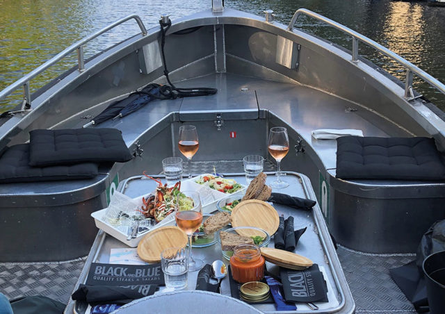 Ne passez pas des heures à manger dans l’un de nos magasins, mais à flotter sur votre bateau de location et à savourer un dîner de 4 plats. Avec votre groupe, vous déterminez l’itinéraire et les plats. Ou vice versa, tout ce que vous voulez. Vous êtes aux commandes de votre propre dîner au sens propre et figuré. Juste comme le vent souffle!